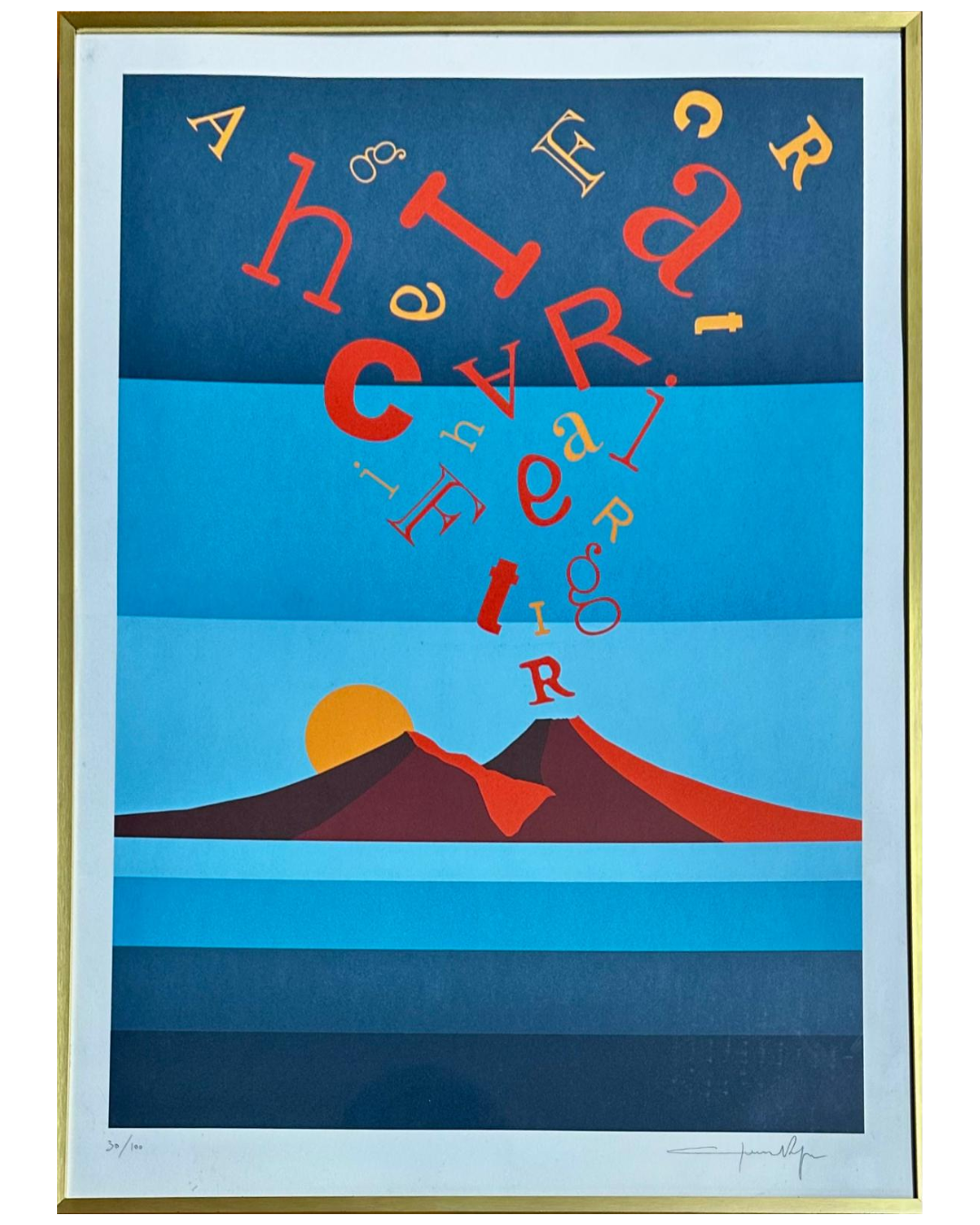 Questa opera dal titolo “Vesuvio Grafico” del maestro Gennaro Regina è stata riprodotta secondo le antiche tradizioni della stampa, antecedenti all’invenzione della quadricomia, ossia utilizzando 8 COLORI PANTONE diversi scelti dall’artista, per ogni colore la lastra è stata incisa affinché il colore venisse trasferito direttamente sul caucciù e poi sul foglio.
